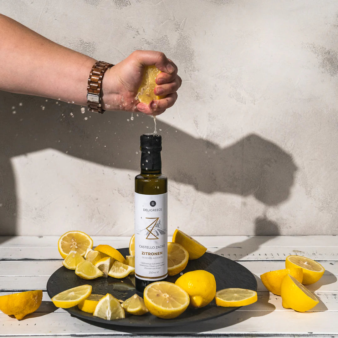 Extra natives Olivenöl von Kreta (mind. 99,6%), frische Zitronen