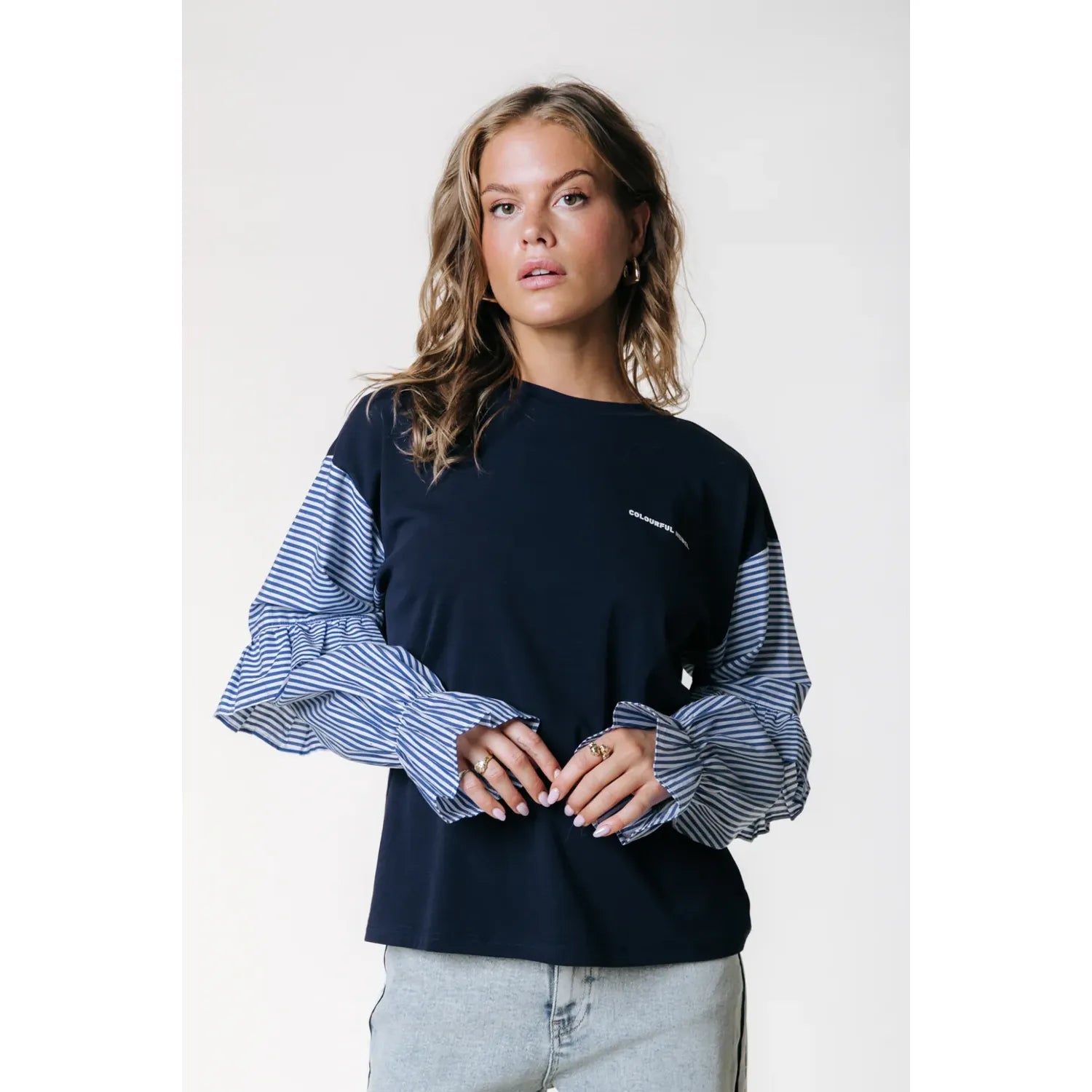 Colourful Rebel Yaz Kontrastärmel-Top - dunkelblau