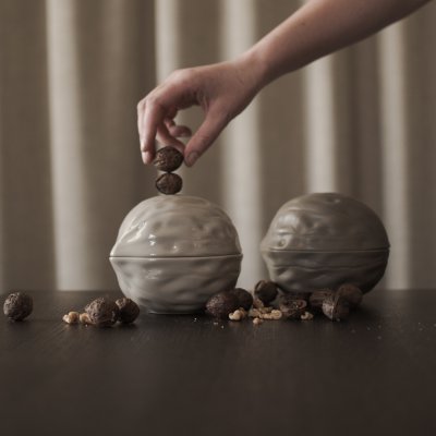 Diese charmante Bowl hat die Form einer Walnuss. Sie lässt sich aufklappen und kann mit Nüssen oder anderen Leckereien befüllt werden. Sie ist so dekorativ und sieht auf deinem Wohn- oder Esszimmertisch einfach chic aus.