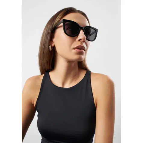 Die Mora Black Sonnenbrille ist der Inbegriff des schlichten Minimalismus mit ihrem tiefschwarzen Rahmen und den stark getönten Gläsern. Dieses klassische schwarze Design ist sowohl auffällig als auch vielseitig und perfekt für jeden Anlass.