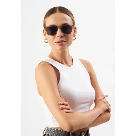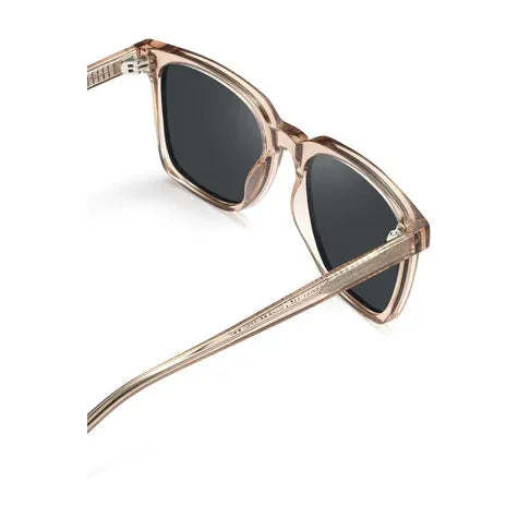 Die Rubino Champagner-Sonnenbrille verfügt über ein elegantes, transparentes, champagnerfarbenes Gestell, das mit dunklen Gläsern kombiniert ist. Das leicht übergroße Design des Rahmens verleiht einen Hauch von Eleganz und Modernität, wodurch diese Sonnenbrille ein perfektes Accessoire für jedes stilvolle Ensemble ist. Der helle, neutrale Farbton des Rahmens ist vielseitig und ergänzt eine breite Palette an Outfits.