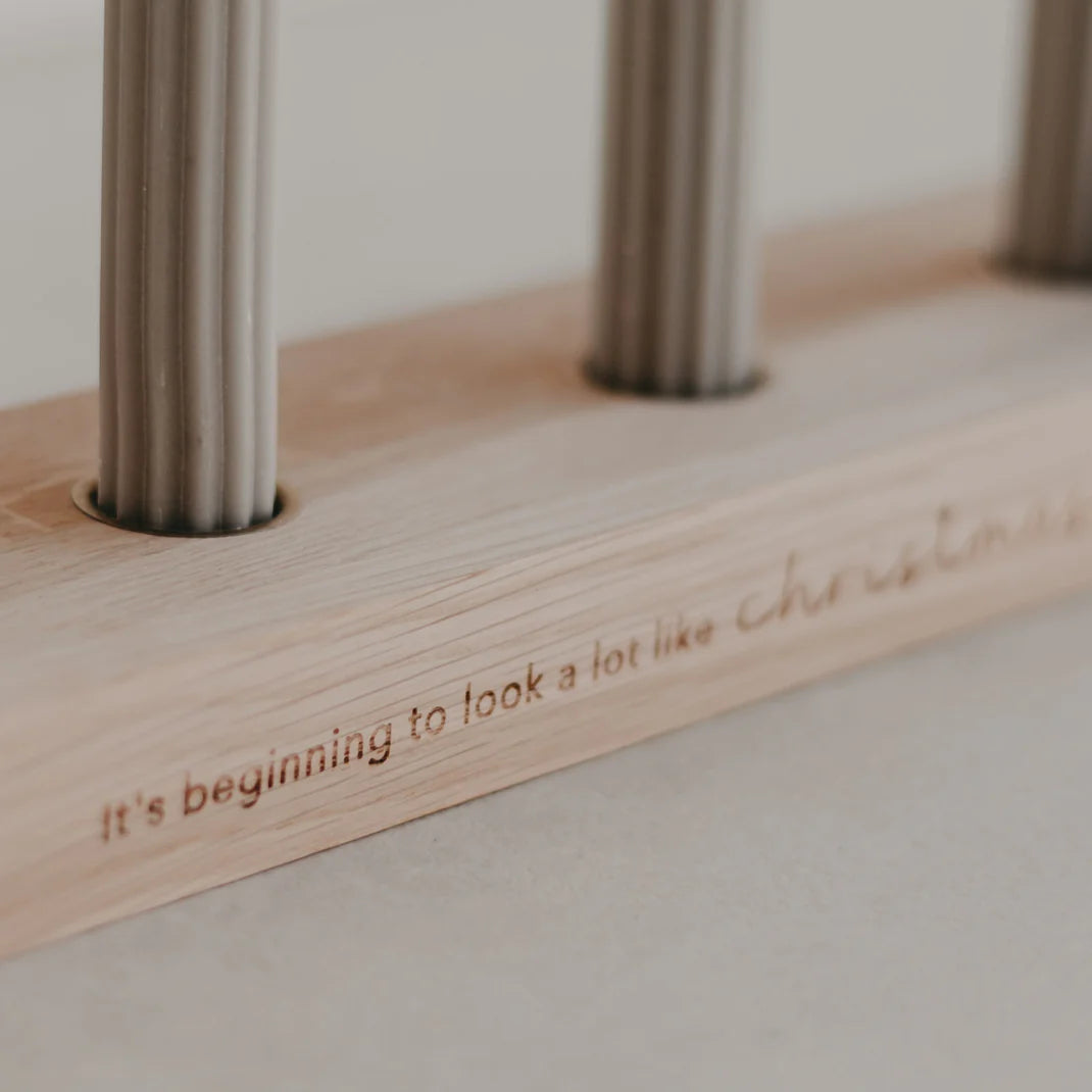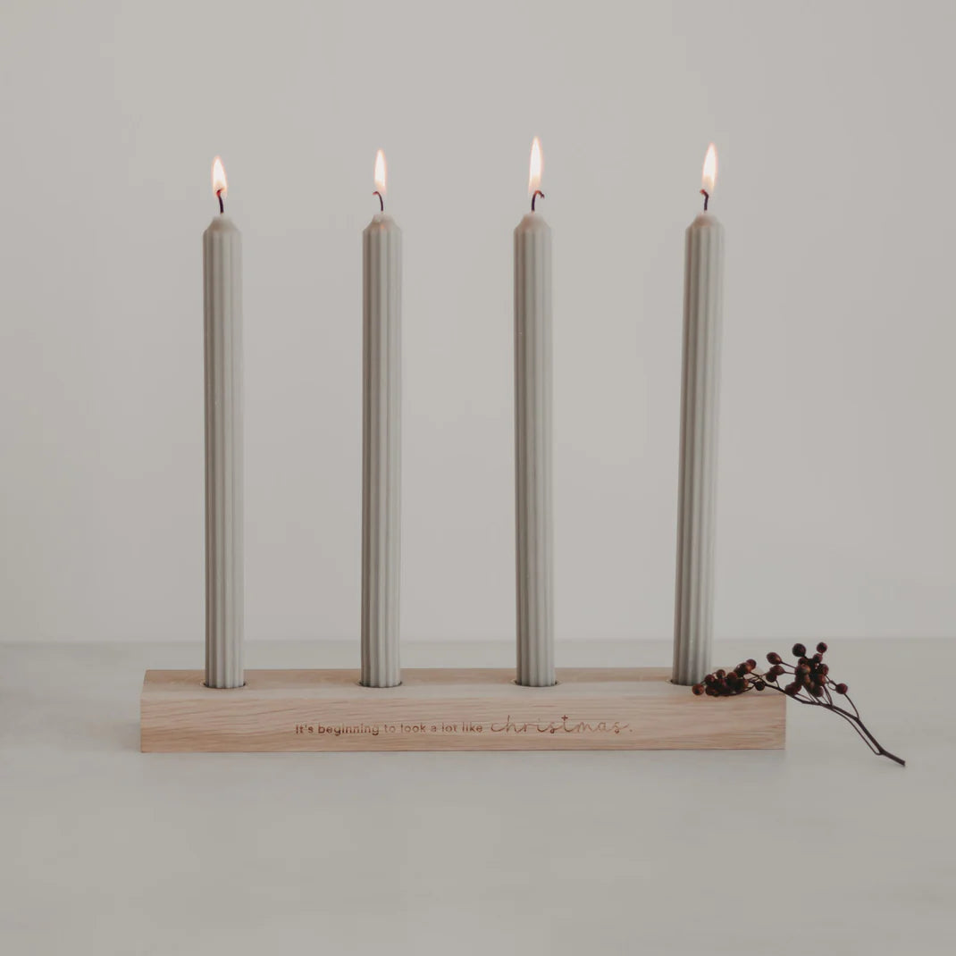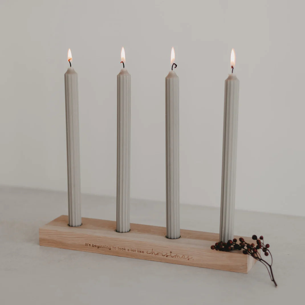 Für die weihnachtliche Stimmung und die gemütliche Adventszeit ist das schlichte und minimalistische Adventskerzenbrett genau das Richtige. Der eingefräste Spruch "It's beginning to look a lot like christmas" bringt Weihnachtsstimmung und Vorfreude auf die Zeit mit deinen Liebsten. Es passt an jeden Lieblingsort - ob Couchtisch, Esstisch, Kommode, Fensterbank oder Regalbrett. So machen die Adventssonntage doch gleich noch viel mehr Spaß!