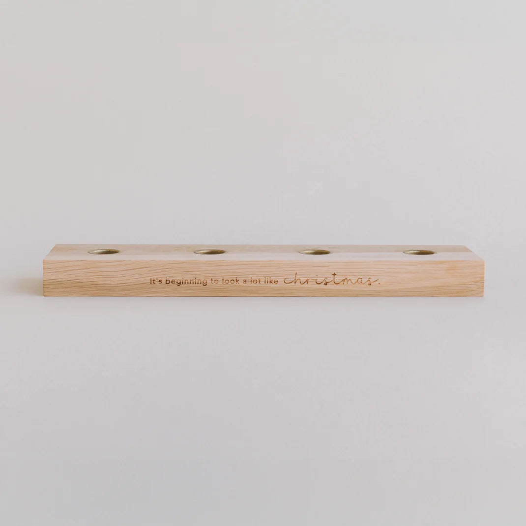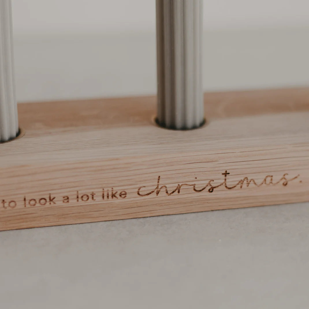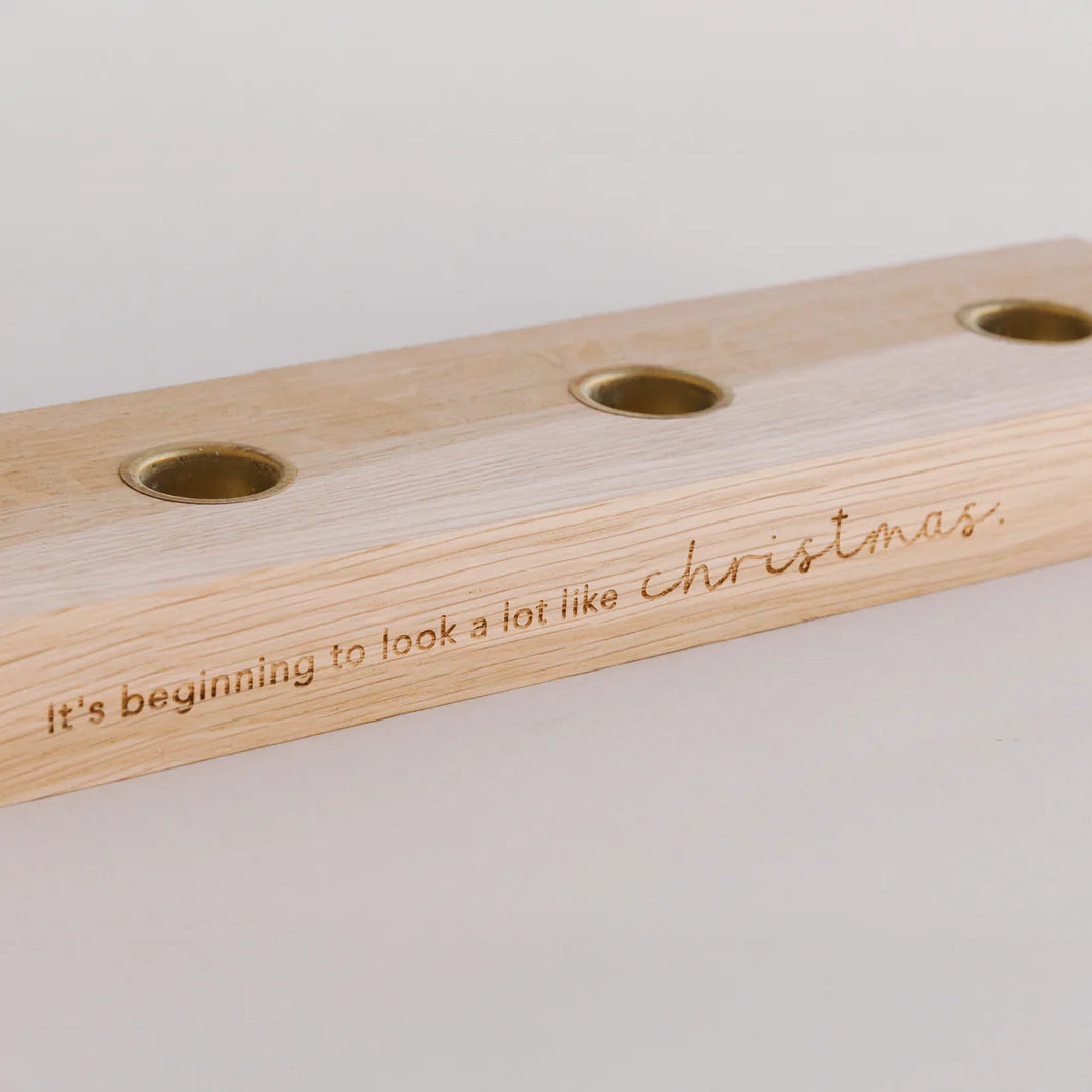 Für die weihnachtliche Stimmung und die gemütliche Adventszeit ist das schlichte und minimalistische Adventskerzenbrett genau das Richtige. Der eingefräste Spruch "It's beginning to look a lot like christmas" bringt Weihnachtsstimmung und Vorfreude auf die Zeit mit deinen Liebsten. Es passt an jeden Lieblingsort - ob Couchtisch, Esstisch, Kommode, Fensterbank oder Regalbrett. So machen die Adventssonntage doch gleich noch viel mehr Spaß!