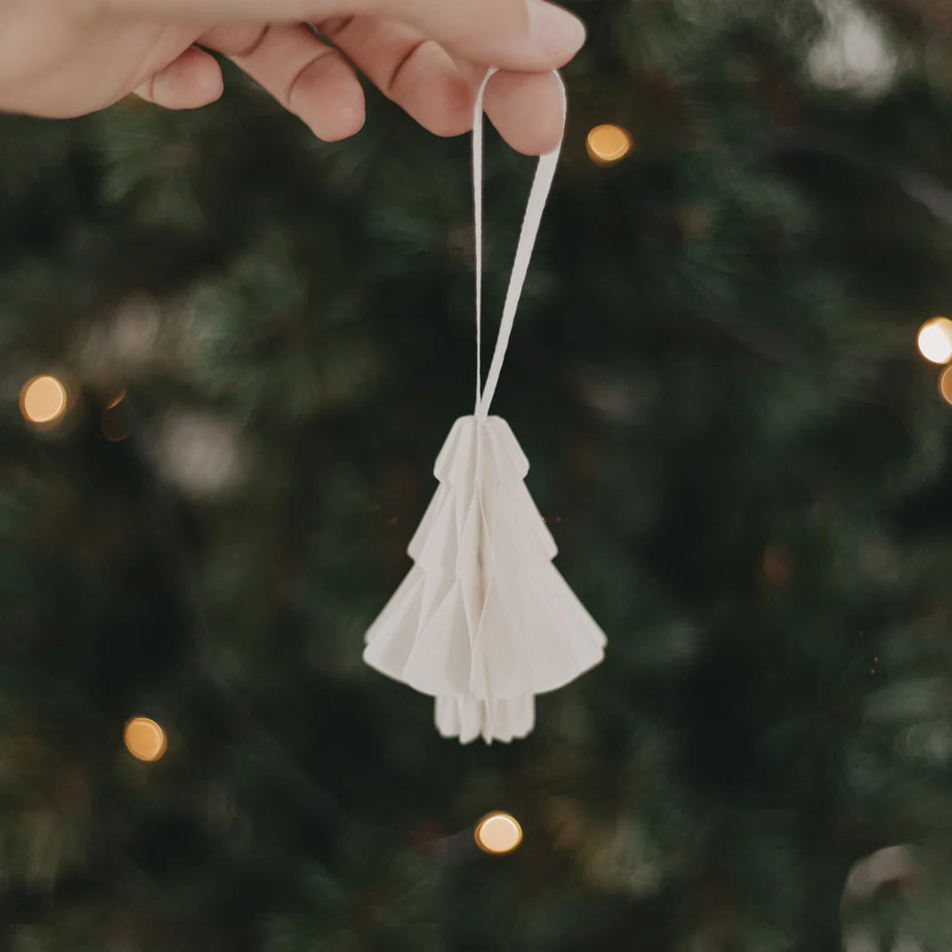 Verleihe deinem Zuhause zur Weihnachtszeit einen stilvollen Hauch Natürlichkeit mit dem Papieranhänger Tanne in Natur. Die eleganten Anhänger in feiner Wabenoptik und liebevoller Tannenform setzen dezente, festliche Akzente an deinem Weihnachtsbaum, an Zweigen, Geschenken oder Fenstern.