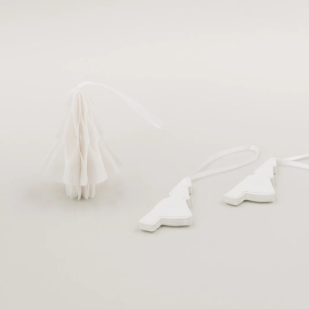 Die zarten Tannenbäumchen aus hochwertigem Papier vereinen Nachhaltigkeit mit stilvoller Zurückhaltung – perfekt für ein skandinavisches, minimalistisches oder klassisch weihnachtliches Deko-Konzept.