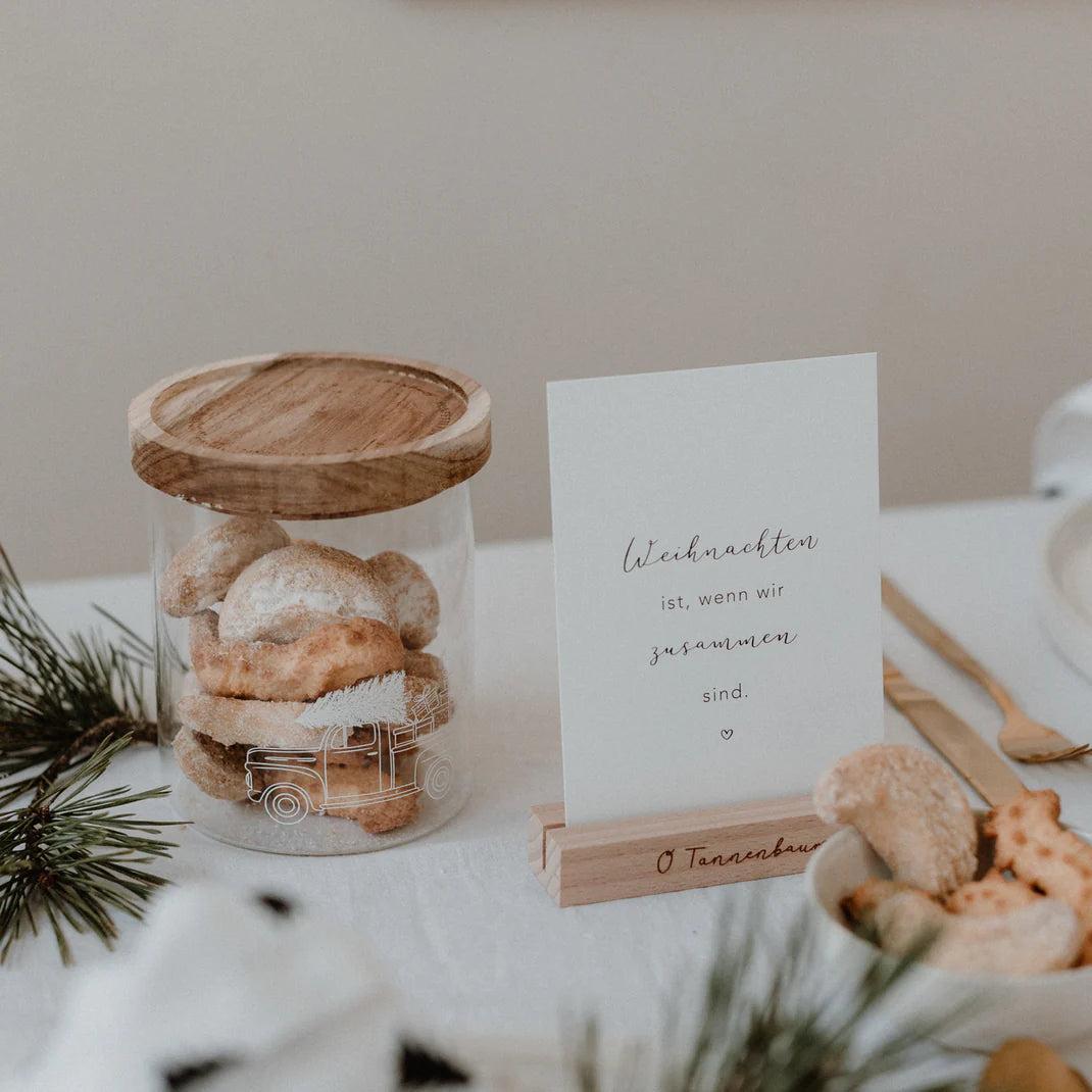 Perfekt für die Aufbewahrung von Weihnachtssüßigkeiten oder als dekoratives Element mit Tannenzweigen, bringt dieses Glas festliche Stimmung in dein Zuhause. Es eignet sich auch hervorragend als kleines Geschenk, um deinen Liebsten eine Freude zu bereiten. Der Deckel aus unbehandeltem Akazienholz trägt das Logo und das Motto "Konfetti für die Seele". Jeder Deckel ist ein Unikat, dank der einzigartigen Holzstruktur. Der Silikonring sorgt für ein luftdichtes Verschließen, damit deine Vorräte frisch bleiben.