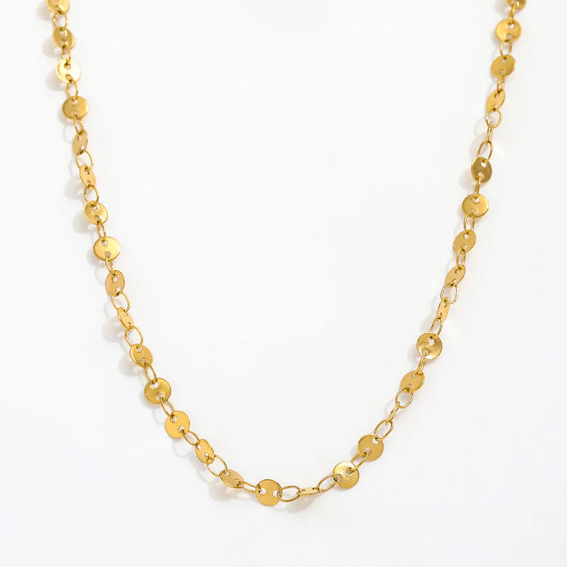 Die Choker Halskette Frida besteht aus vielen kleinen schimmernden Minicoins. In Kombination mit längeren Ketten, sieht sie einfach wunderschön aus. Durch ihren Karabinerverschluss lässt sie sich super simple an- und ausziehen.