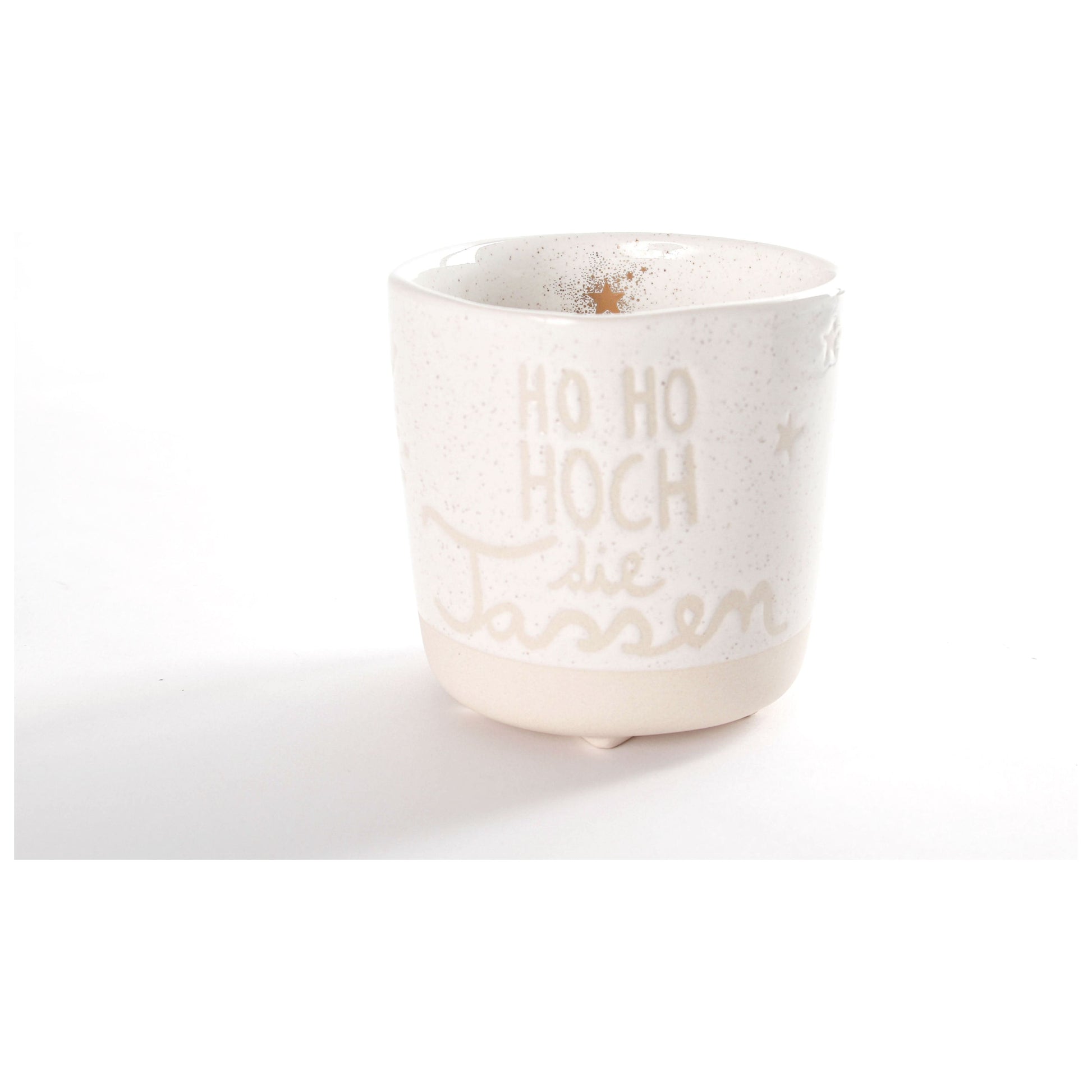 Bezaubernder Sternenbecher von Good old friends – ein kleines Schmuckstück aus hochwertigem Steingut, mit sternenförmigen Boden, weißer Pünktchen Glasur und goldenem Decaldruck. Ho Ho Hoch die Tassen - und wenn man diese schönen Becher hochhebt, dann zeigt sich ein ganz besonderer sternförmiger Boden. Die teils glasierten Flächen verleihen ihm eine sanfte, edle Haptik, während die wunderschönen Motive dein Herz höher schlagen lassen.