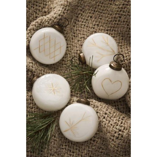 Ib Laursen Weihnachtskugel flach - weiß mit goldfarbener Eingravierung - 3-er Zweig