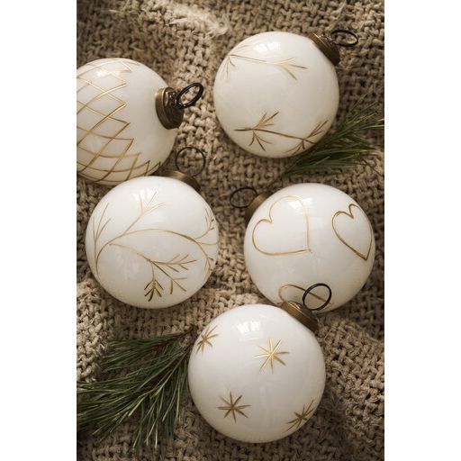 Ib Laursen Weihnachtskugel weiß mit goldfarbener Eingravierung - Zweig