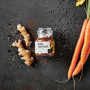 Lust auf ein indisches Curry? Einen Gemüse Dip? Oder einfach indische Gewürze? Perfekt, denn dieser Dip kombiniert fein-scharfen Ingwer mit süßlicher Karotte und würziger Sojasauce. Lecker als Gewürz, mit Crème fraîche angerührt als Dip oder mit Öl als Marinade für Fisch, Fleisch und Gemüse. Der einzigartige Charakter eignet sich einfach hervorragend zum Indisch kochen. Kreativ, leckerer und einfach gut.