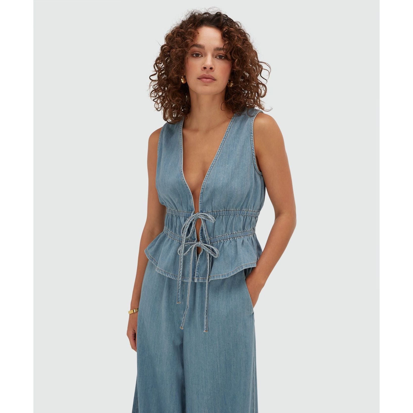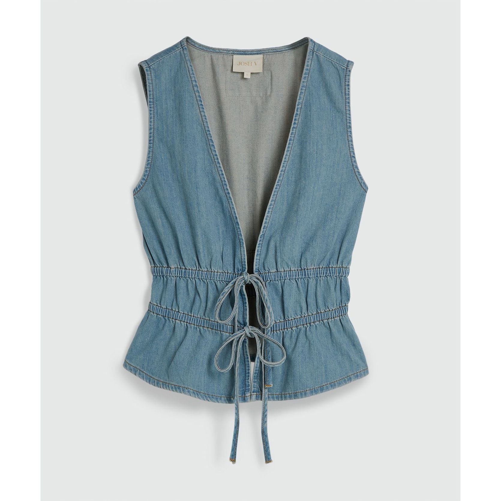 Das JOSH V Sea Damen-Top in Mid Blue Denim ist ein echtes Styling Piece, dass du lieben wirst. In Kombination mit einer weißen Leinen Hose, sieht das Top einfach wunderschön aus.