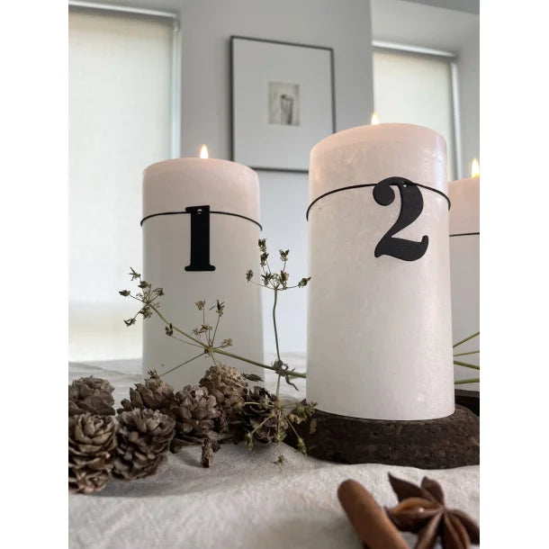 Diese schönen Adventszahlen aus der Serie OOhh sind aus recyceltem Holz. Die Zahlen kann man mit dem Band binden, so passen sie auf verschiedene Kerzen und werten deinen Adventskranz auf.