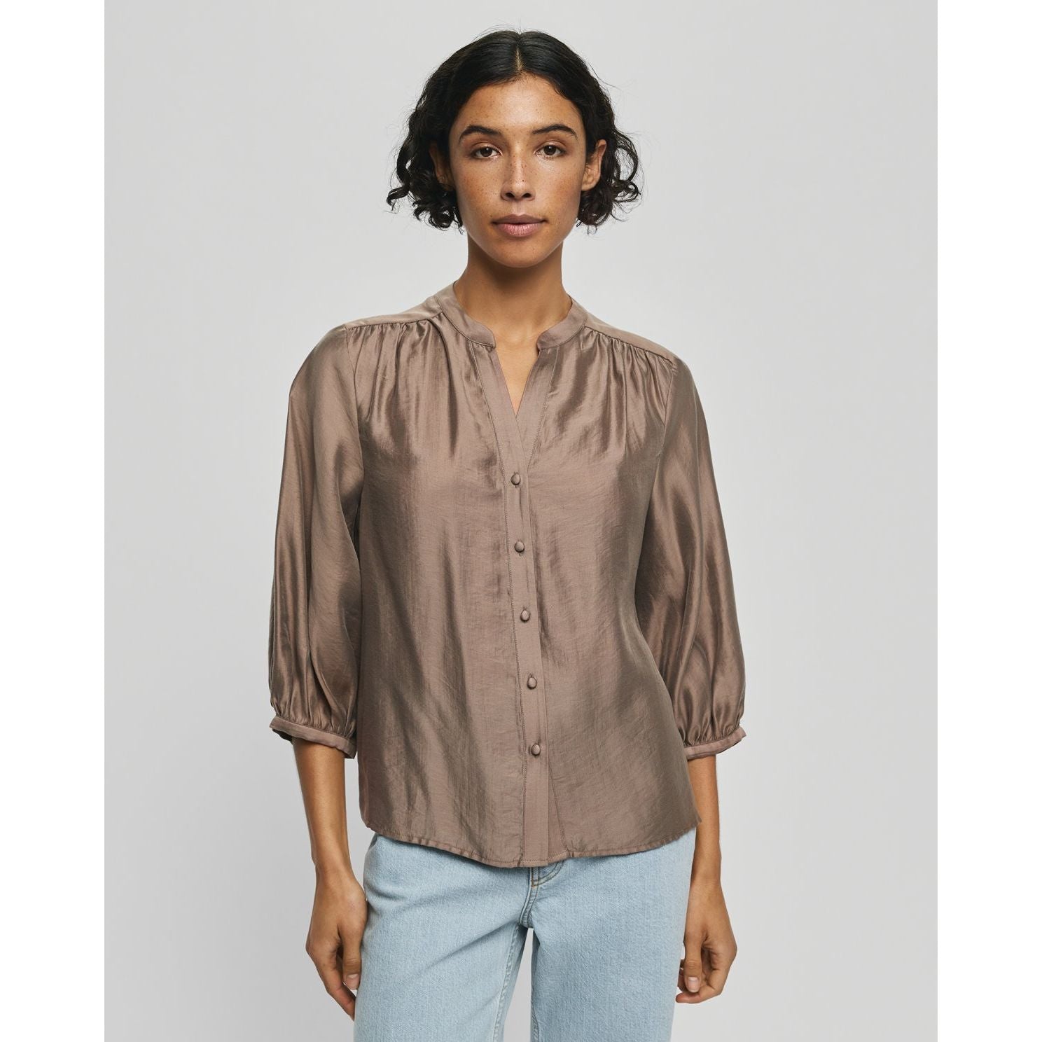 Eine super schöne Bluse mit 3/4 Ärmeln und einem leichten Schimmer Look . Perfekt für den anstehenden Frühling. Ob chic mit Anzugshose oder auch casual mit Jeans und Sneaker - sie ist einfach ein tolles Piece.