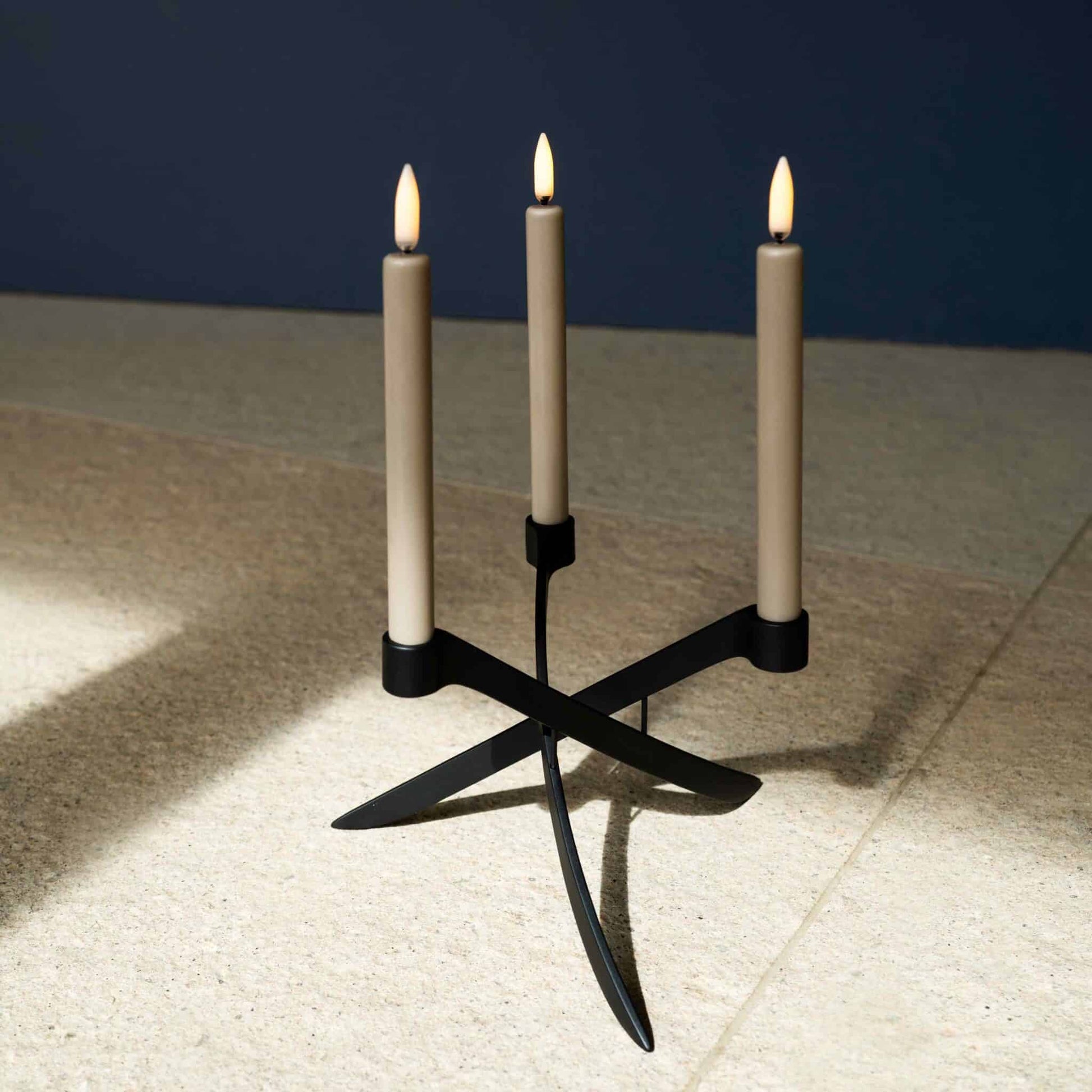 LED Stabkerze ( Set aus 2 Kerzen) von Piffany Copenhagen. Mit ihrer 3D Flamme und der äußerlichen Optik, wirkt die Kerze unvergleichlich natürlich. Die Kerze hat einen 3 Stufen Dimmer und ist aus Echtwachs gefertigt.