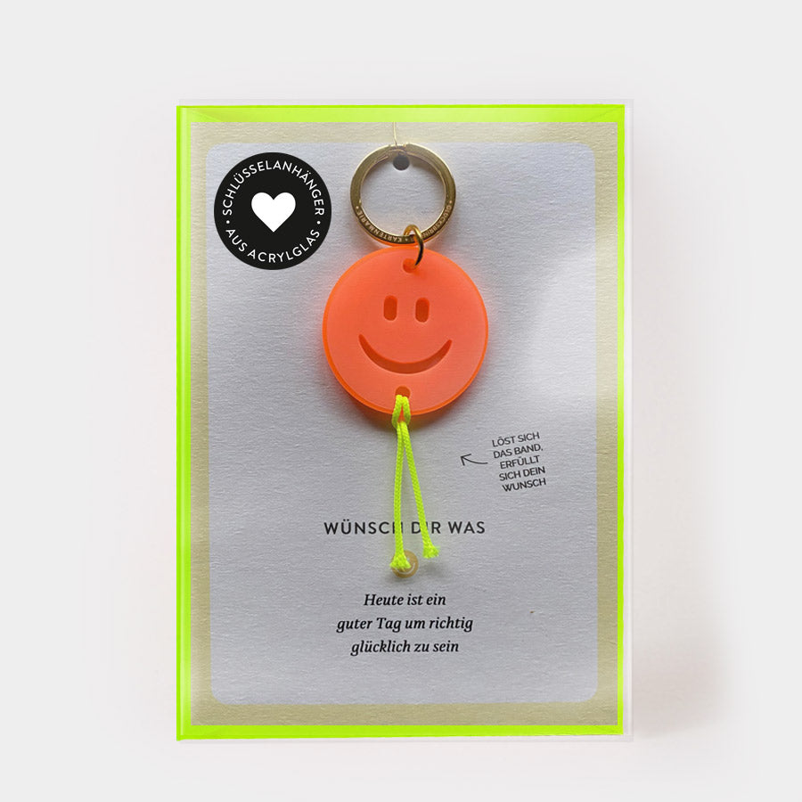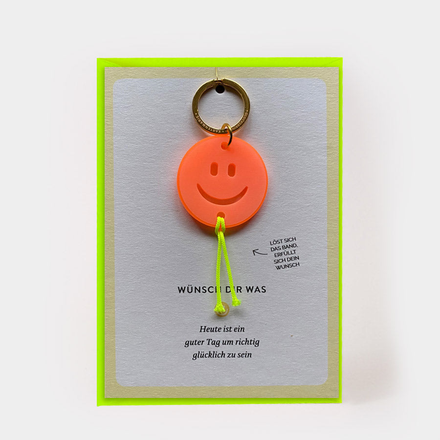 Farbe: Schlüsselring: gold/ Smiley: neonorange/ Wunschband: neongelb