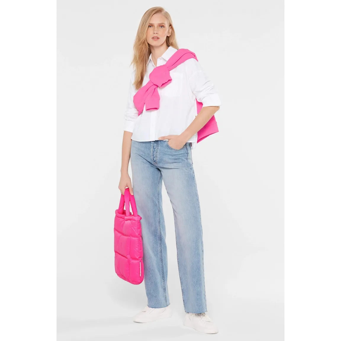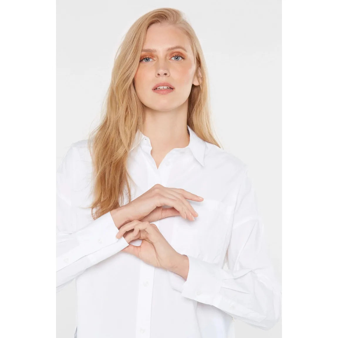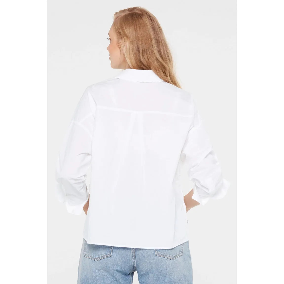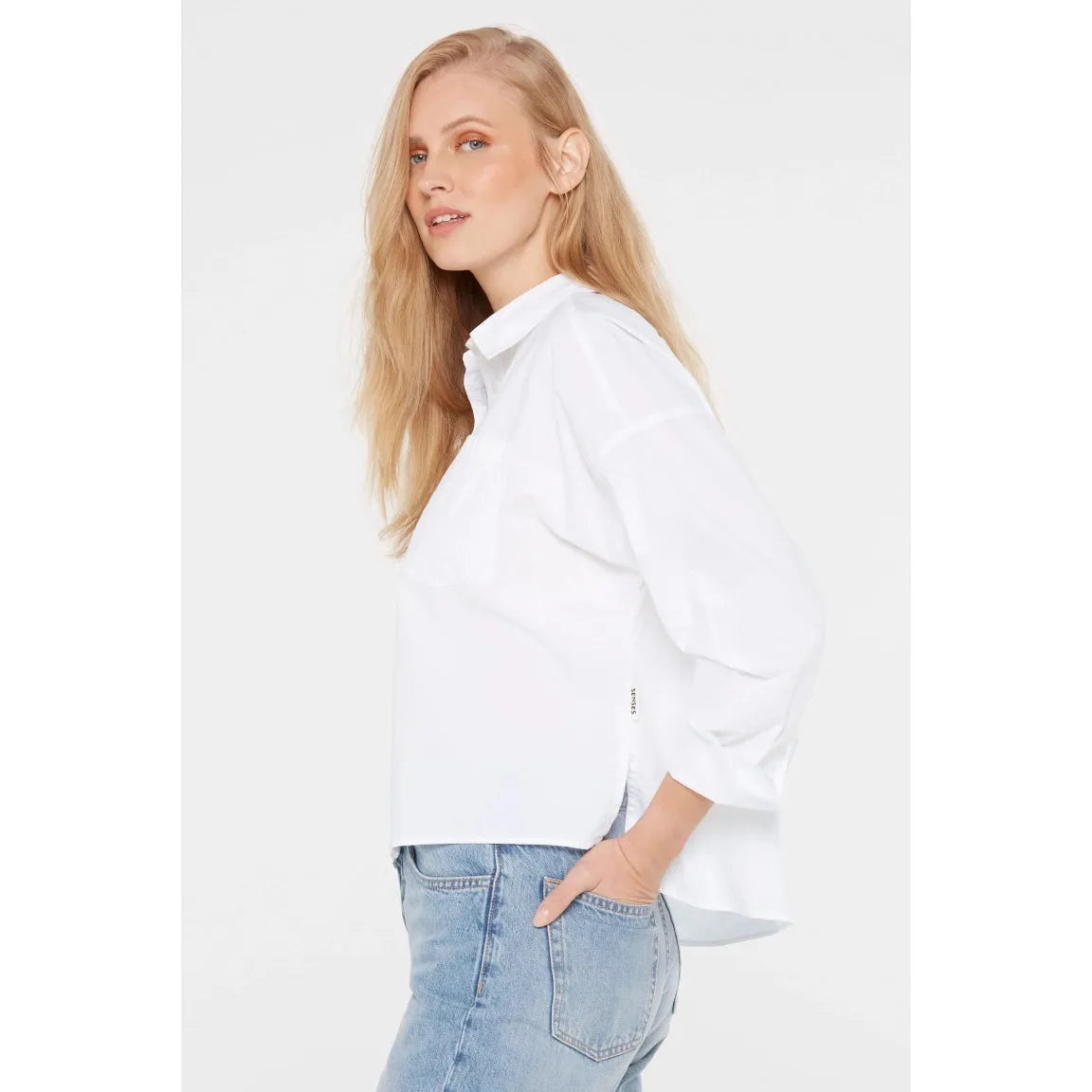 Diese coole leicht gecroppte Bluse kannst du super gut sporty mit Wide Leg Jeans oder auch chic & classy kombinieren. Ein echtes kleines Must-Have für deinen Kleiderschrank.