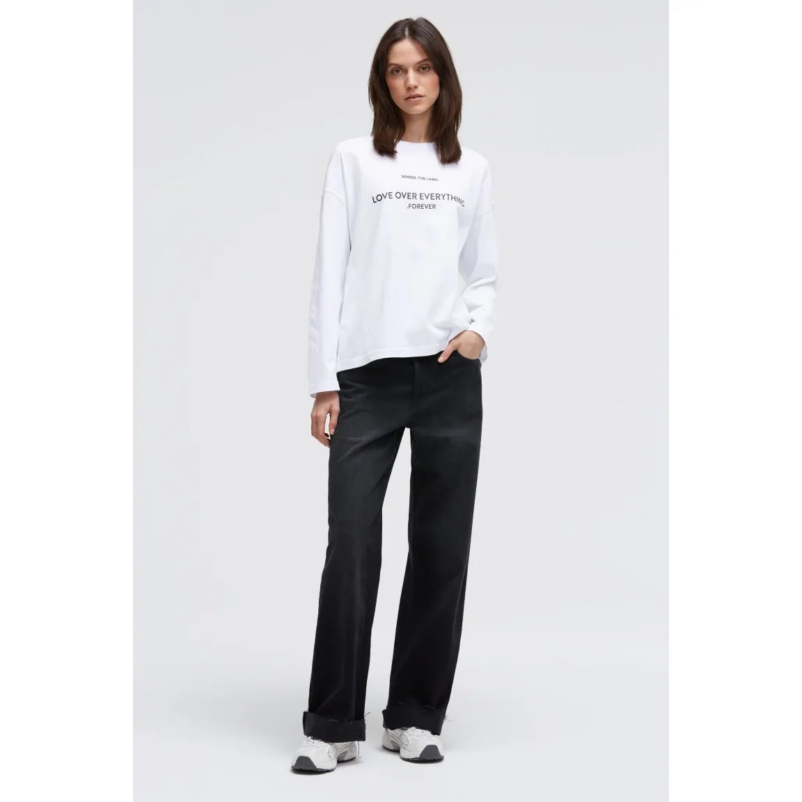 Das Langarmshirt von SENSES.THE LABEL kommt mit einem sportiven Rundhalsausschnitt und einem Wording Print auf der Vorderseite. Es ist ein bequemes Piece für jeden Tag.