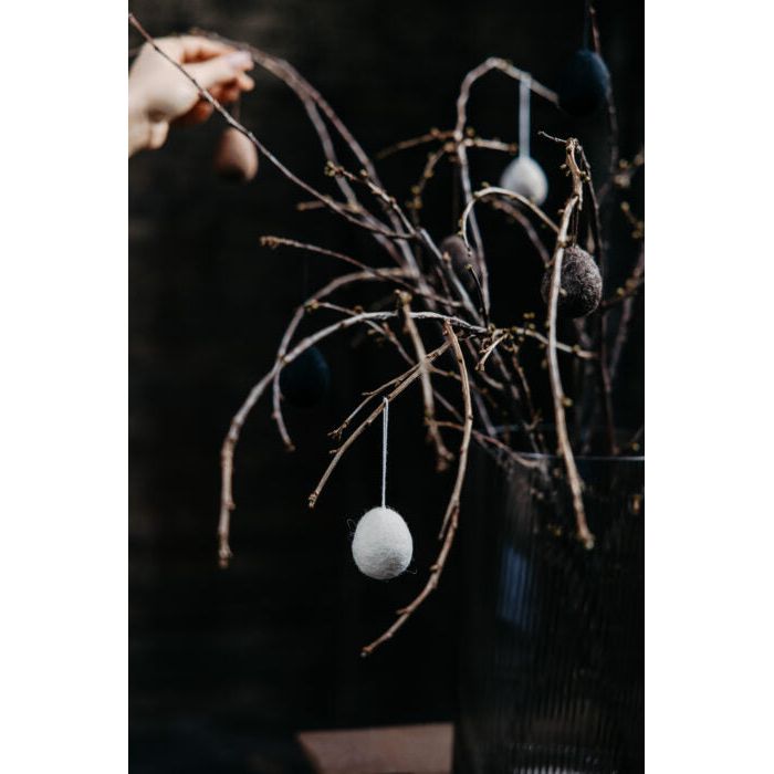 Das hübsche Osterei aus Filz passt perfekt in deine Scandi Osterdeko. Hänge es an einen Osterstrauß oder einen einzelnen Ast. Kombiniere auch mit anderen Anhängern. Natürlich kannst du das Ei auch in eine Osterschale mit Moos und Blumen legen.