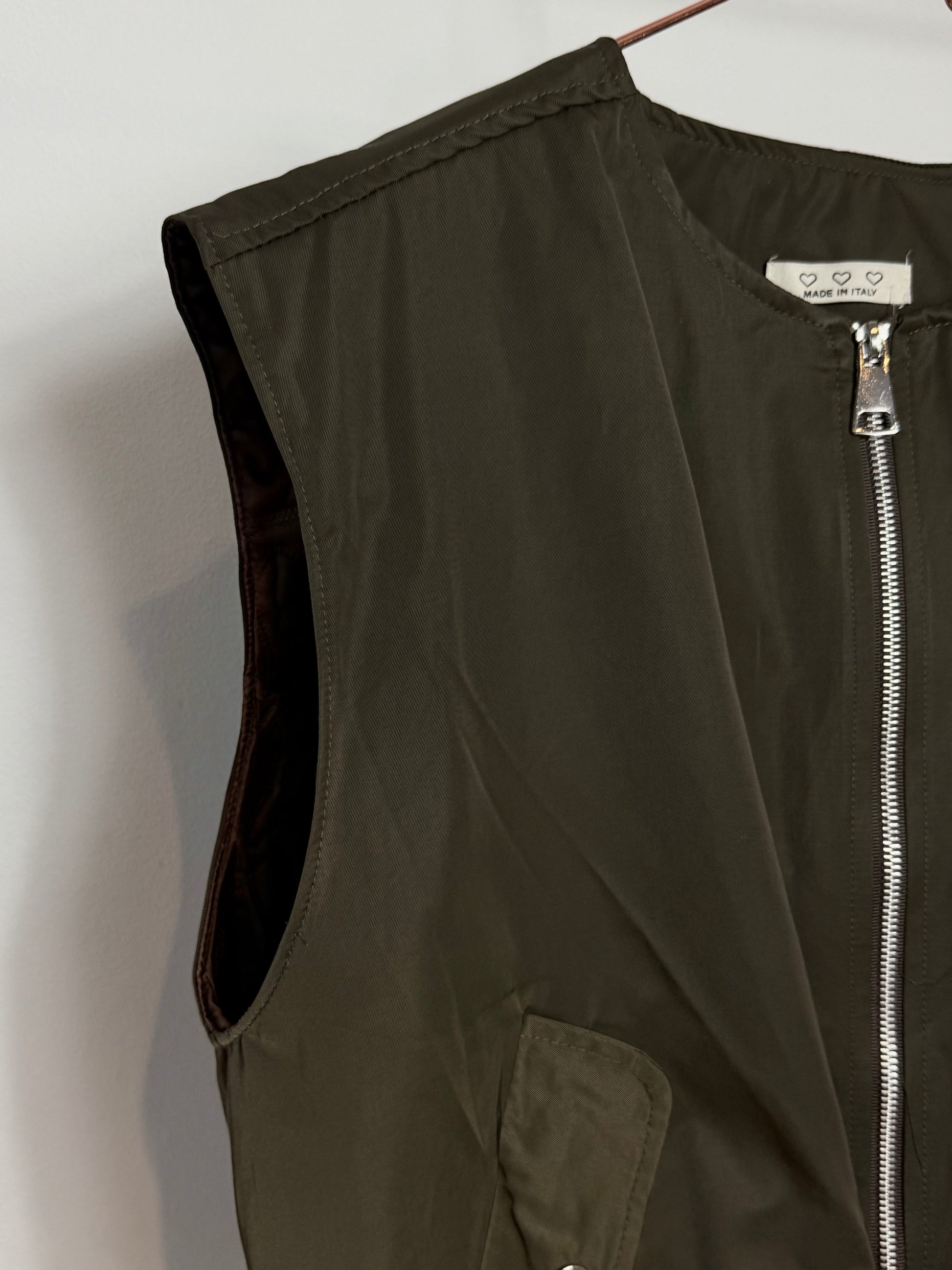 Diese schokobraune Weste ist dein neues Must-Have für coole Layering-Looks! Ob über Hoodie, Longsleeve oder Strick-Piece- diese Weste verleiht jedem Outfit das gewisse Etwas. Das perfekte Piece für deine Herbst Looks!