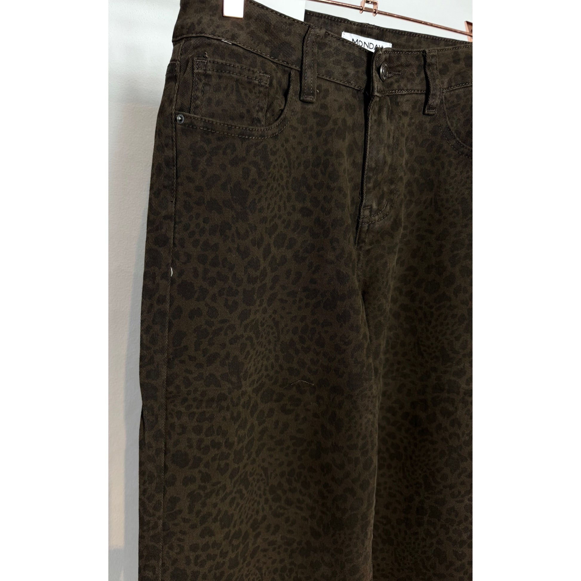Diese Wide Leg Leo Jeans sorgt für einen wilden, aber zugleich lässigen Look. Der coole Schnitt und das trendige Leo- Design machen sie zum echten Statement-Piece. Perfekt um deinem Outfit das gewisse Etwas zu verleihen!