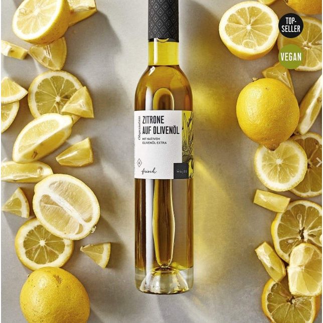 Eine frisch-würzige und vielseitige Olivenölzubereitung. Die feinen Zitronennoten schmecken hervorragend in frischen Salaten und sind in hellen Saucen zu Fisch und Hühnchen ein besonderer Genuss.